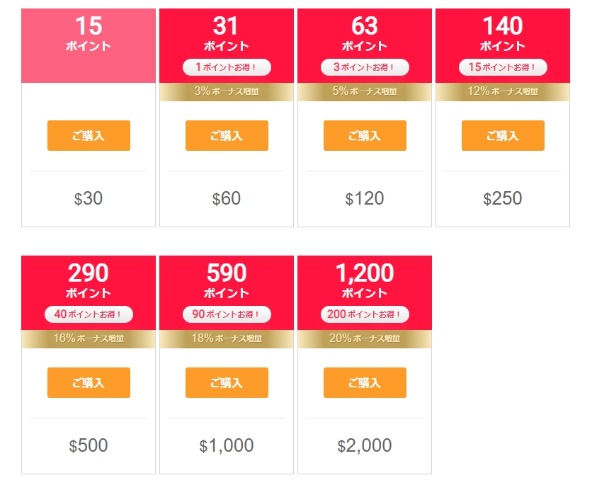 クレジットカードを使う場合、予め用意された料金プランから選んでポイントを購入します。